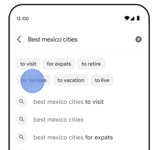 In the model underneath, you can see Google proposing various ways of developing the question “best Mexico urban areas”: